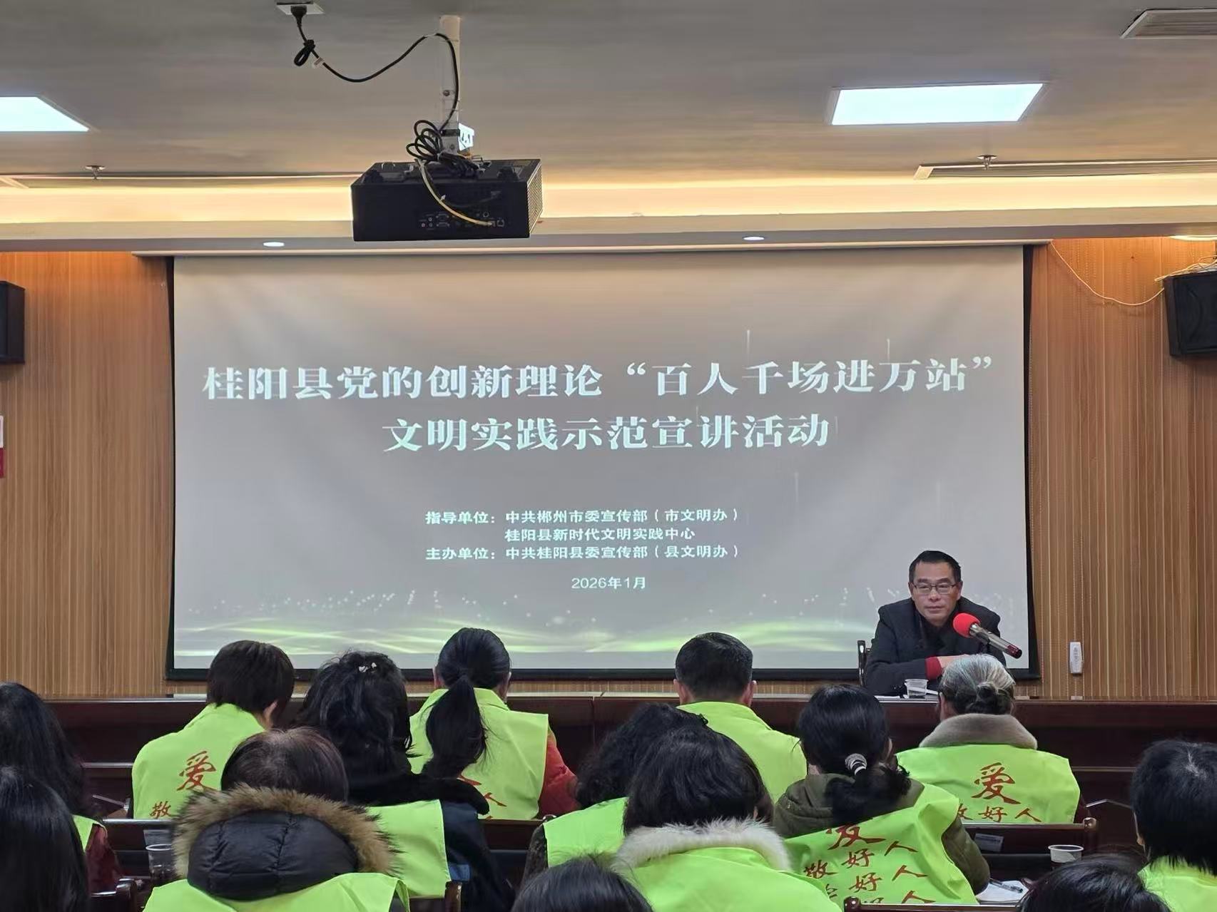 为深入学习贯彻党的二十届四中全会精神,扎实推进新时代文明实践中心建设,推动党的创新理论落地生根与精神文明建设深度融合。1月23日,郴州市桂阳县在新时代文明实践中心举行党的创新理论“百人千场进万站”文明实践示范宣讲暨2025年第四批“中国好人榜”发布仪式集中收看活动。县好人协会30余名志愿者共同接受思想洗礼与道德滋养。