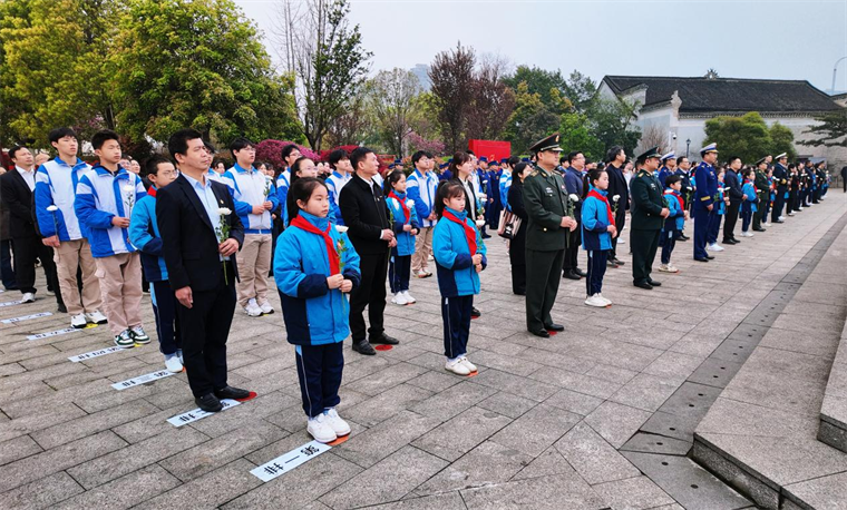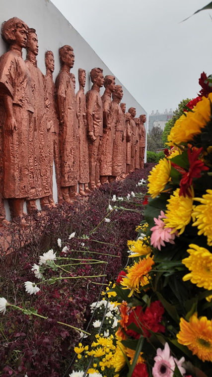 庄严的《献花曲》缓缓响起,全体人员依次走向英烈群雕像前敬献鲜花,并前往湘南学联纪念馆聆听红色故事,追思革命先烈丰功伟绩。
