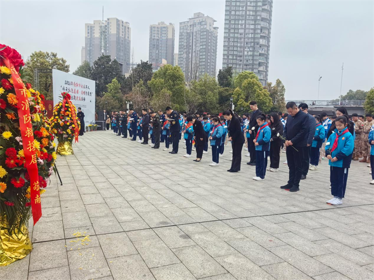 3月27日,2026年湖南省衡阳市“我们的节日·清明”暨未成年人“传承红色基因·清明祭英烈”文明实践主题活动在湘南学联英烈群雕像前举行。