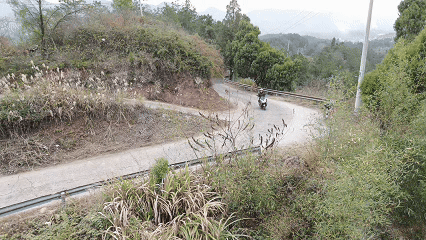 山路狭窄崎岖,弯道一个接着一个,只见杨浩紧握车把,目光紧盯前方路况,摩托车在山路上灵活穿梭。